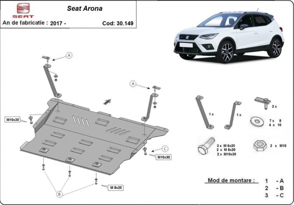 Protetores de cárter em Aço para a proteção do motor, caixa de velocidades, radiador, pára-choques dianteiro, DPF , particle filter The skid plate is new and fits perfectly for all versions of Seat Arona manufactured between 2017 and 2026. Os nossos protetores de cárter são feitos com chapas de aço com 2 mm de espessura com pintura eletrostática. Entregue com todos os acessórios necessários (parafusos, porcas, grampos). Todas os protetores de cárter possuem um revestimento em pó para impedir a corrosão. |
