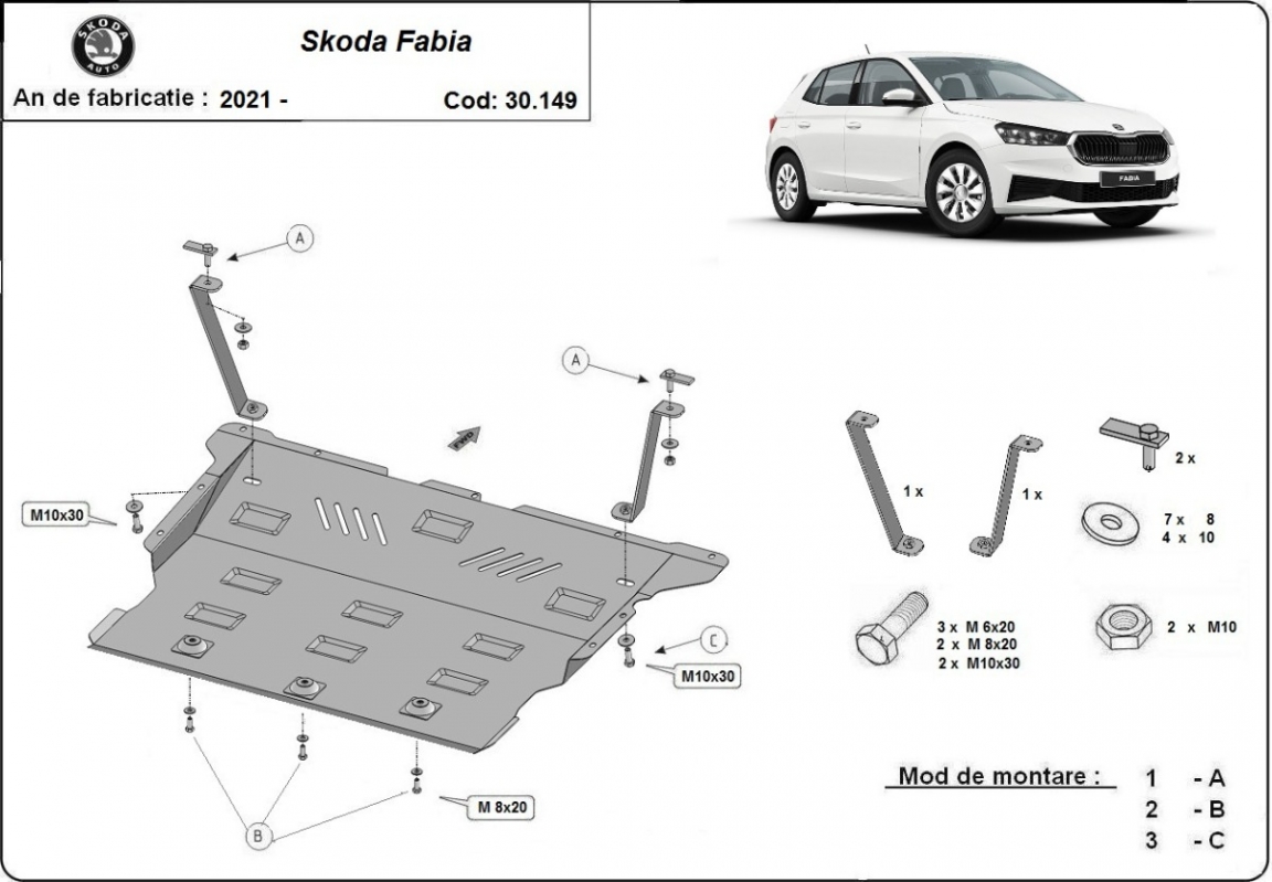 Protetor de Carter de aço Skoda Fabia (2021-2026)