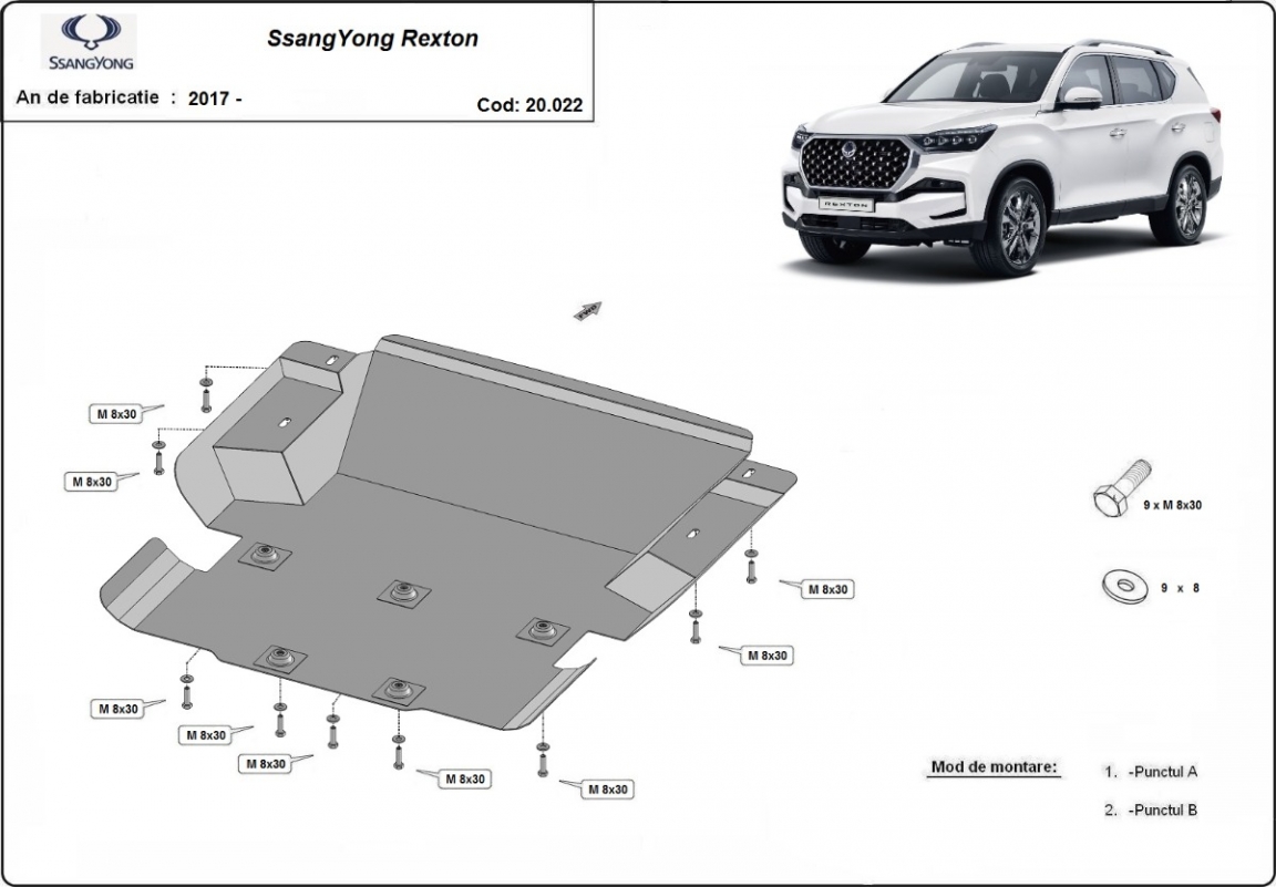 Protetores de cárter em Aço para a proteção do motor, radiador, pára-choques dianteiro The skid plate is new and fits perfectly for all versions of SsangYong Rexton manufactured between 2017 and 2026. Os nossos protetores de cárter são feitos com chapas de aço com 2 mm de espessura com pintura eletrostática. Entregue com todos os acessórios necessários (parafusos, porcas, grampos). Todas os protetores de cárter possuem um revestimento em pó para impedir a corrosão. |