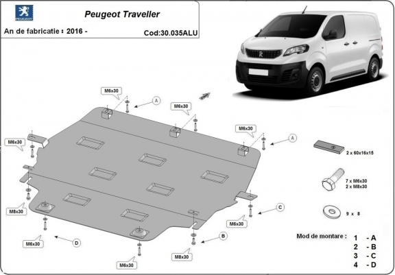 Protetores de cárter em Alumínio para a proteção do motor, caixa de velocidades, radiador The skid plate is new and fits perfectly for all versions of Peugeot Traveller manufactured between 2016 and 2026. Os nossos protetores de cárter são feitos com chapas de aço com 3 mm de espessura com pintura eletrostática. Os escudos são de alumínio, mas os suportes de fixação são de aço. Entregue com todos os acessórios necessários (parafusos, porcas, grampos). Todas os protetores de cárter possuem um revestimento em pó para impedir a corrosão. |
