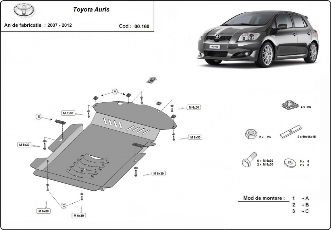 Protetores de cárter em Aço para a proteção do Conversor catalítico The skid plate is new and fits perfectly for all versions of Toyota Auris manufactured between 2007 and 2012. Os nossos protetores de cárter são feitos com chapas de aço com 2 mm de espessura com pintura eletrostática. Entregue com todos os acessórios necessários (parafusos, porcas, grampos). Todas os protetores de cárter possuem um revestimento em pó para impedir a corrosão. |
