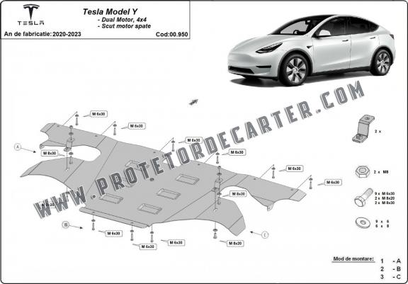 Blindagem frontal do motor elétrico para Tesla Model Y AWD